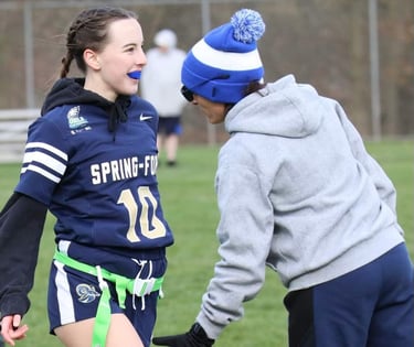 With support from the School District and the Philadelphia Eagles, the inaugural Spring-ford Flag football team took the field for their first game on March 19, 2024. The team which comprised 35 members, went 4-4 during the regular season. They competed against other teams in Southeastern Pennsylvania, some of which had been playing for several seasons. They went into the playoffs and won their very first playoff game. They lost their second playoff game in a hard fought battle against Bristol High School. They are looking to improve their record in 2025 and move further into the playoffs.